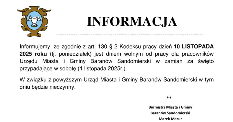 10 listopada 2025r. – Urząd Nieczynny