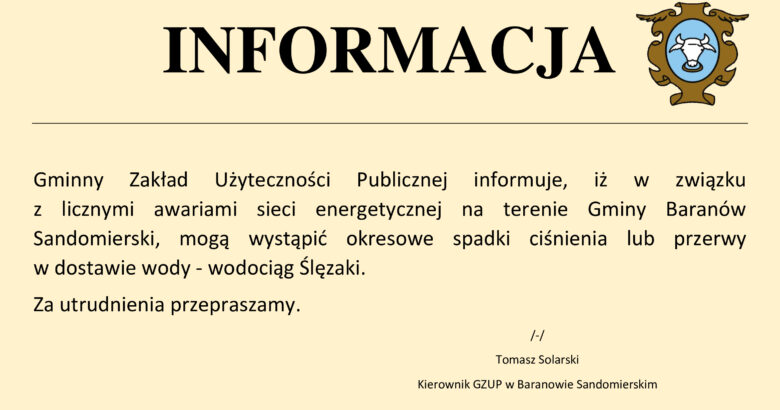 Awarie sieci energetycznej na terenie Gminy mogą spowodować utrudnienia!