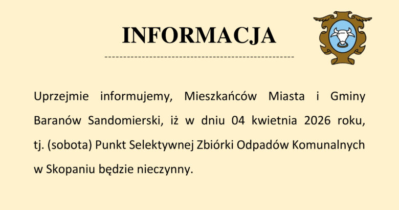 W dniu 4 kwietnia PSZOK nieczynny!