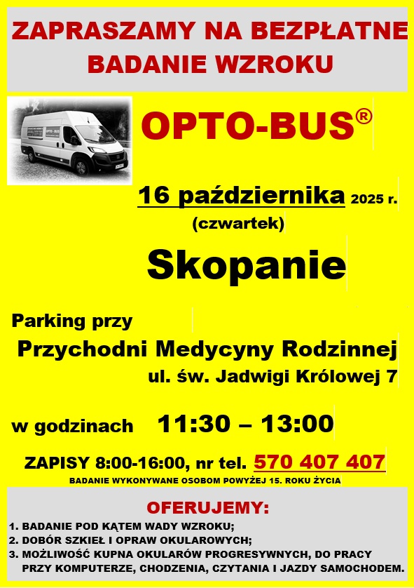OPTO-BUS bezpłatne badanie wzroku w Skopaniu